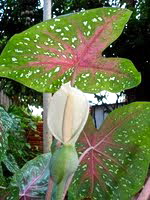 The photo of the Tamba-Tajá plant in the story’s text shows the “small leaf” or flower on the backside of the Elephant Ear quite well. Without that flower, love ain’t going right in the house.