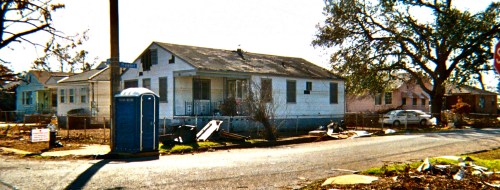 The battered house is where my father grew up in the 1940s and 50s. It was on the corner of Lafaye and Frankfort Streets, which was in a new subdivision being made up near the shore of Lake Ponchatrain, where the Air Force had major installations during World War II. My grandparents moved there after the war, once my grandfather— “Grumpy” as we called him—got home from the Pacific and took a job with the Postal Service, where he would work until his retirement. I remember that house in the 1960s and early 70s. I was all of 5 and everything was happy there. Grumpy made ice cream in the back yard and told us funny stories. He let us grandkids take a turn or two each on the hand-crank. It was good ice cream. The house is no longer there.