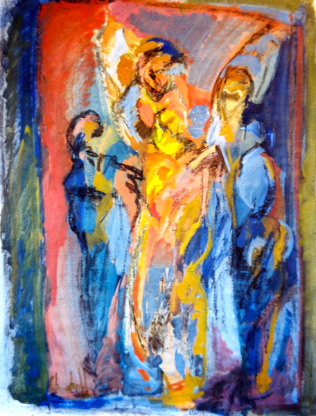 The opening image is “Daniel et l’ange dans la fosse” (“Daniel and the Angel in the Pit”) by Macha Chmakoff (www.chmakoff.com), a contemporary painter who has an extensive set of works in Biblical themes and images. The original painting is oil on canvas, 52″ x 39″ (130 x 97 cm). Ms. Chmakoff is a psychoanalyst and painter who has been exhibited across France and has gained international noteriety for her paintings. The image was provided by Ms. Chmakoff and is used here with her permission. She recently had a reproduction of one her paintings, “Jésus, souviens-toi de moi,” exhibited between the columns of the Église de la Madeleine, the magnificent Greek classical church in Paris.