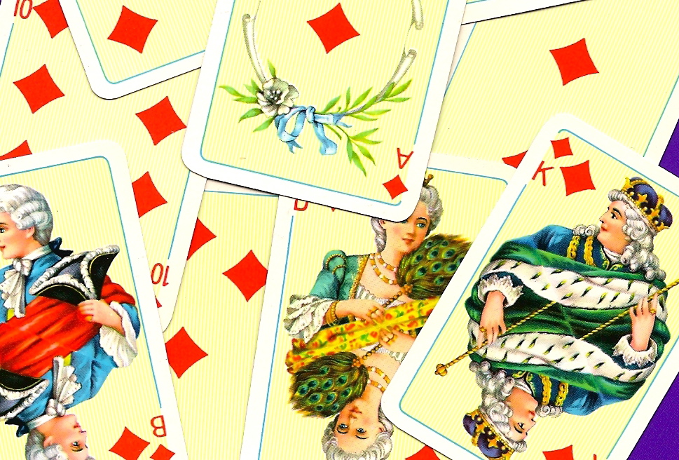 The playing cards were photographed by the author, from a miniature travel deck for Patience (Solitaire) given to me in 1992 by Professor Raymond Grew, a mentor of mine in graduate school at the University of Michigan.