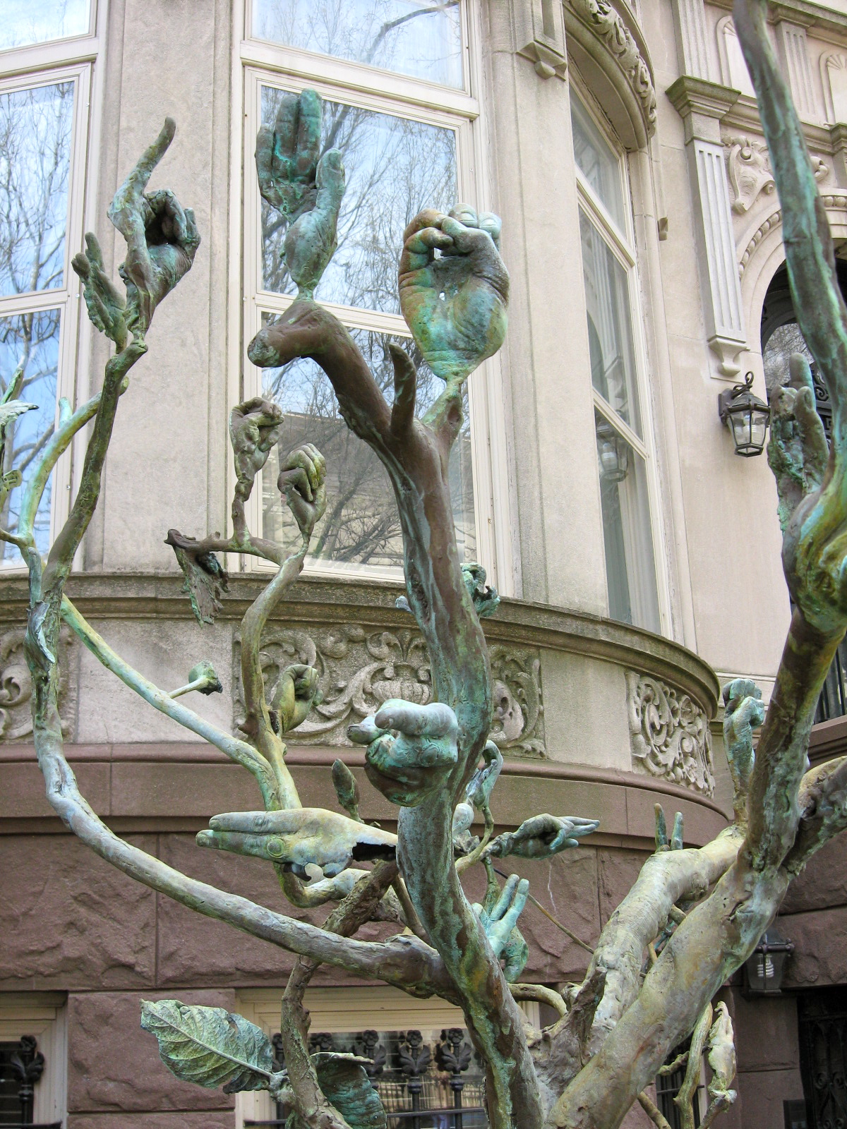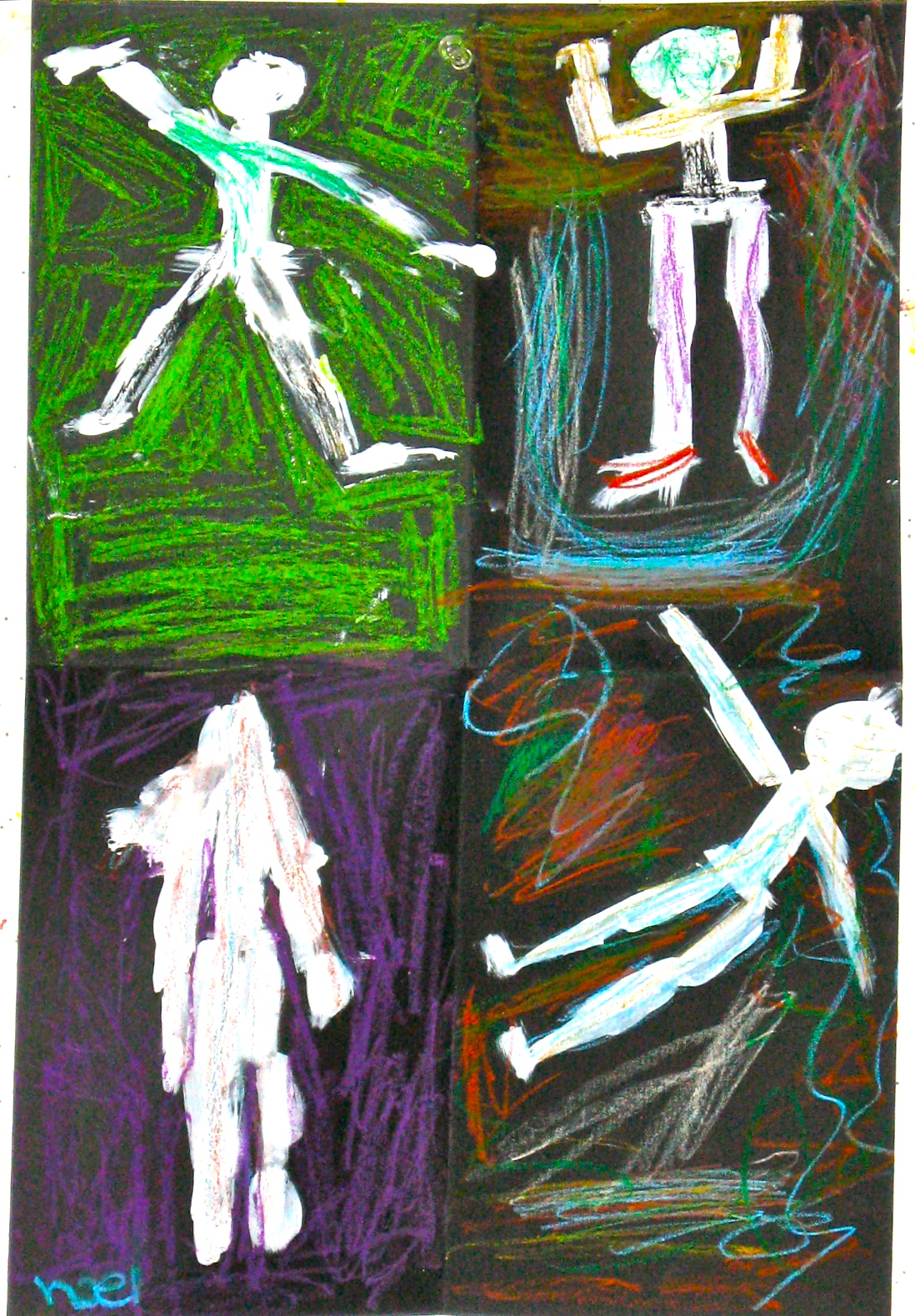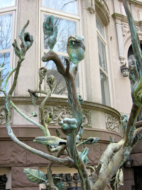 The photos were all taken by the author in the neighborhood of Park Slope, Brooklyn, in 2008, 2009, and 2010. The first is a photo of an art project my son did in the first grade (2009), drawing the human form. The second is the tunnel at the northwestern entrance of Prospect Park. The third is a garden scultpure in front of a house on 2nd Street, near the corner with Prospect Park West.