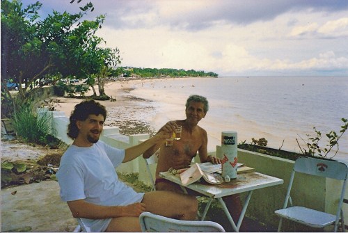 The picture of the Bolaño graffiti was taken from gsz’s photostream on Flickr. The photo of the author and Gondim was taken on the beach at Mosqueiro in 1995. Mosqueiro is the old resort area of Belém, still within the city limits but on a remote island, where the elite used to have weekend vilas and houses.