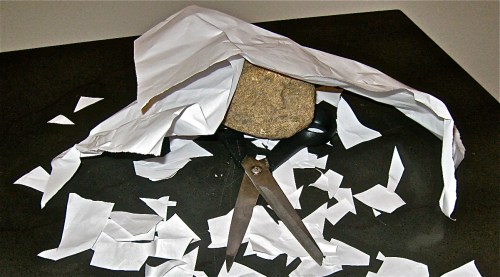 Photographs of origami boulders and the artistic process by the author. This work, like everything else in America, is for sale. Please email guidry_z [at] hotmail.com for a price schedule and list of options to tailor Origami Boulders to your specific needs. The fact that there is printing on one side of the sheet of paper used is indeed a meta-critique of Western Society itself, leaving no stone unturned in the artist’s quest for antihistorical self-actualization. I am grateful to Rob Vanderlan, fellow political science graduate student at the University of Michigan, for introducing me to the joys of origami boulder sculpture in 1989.