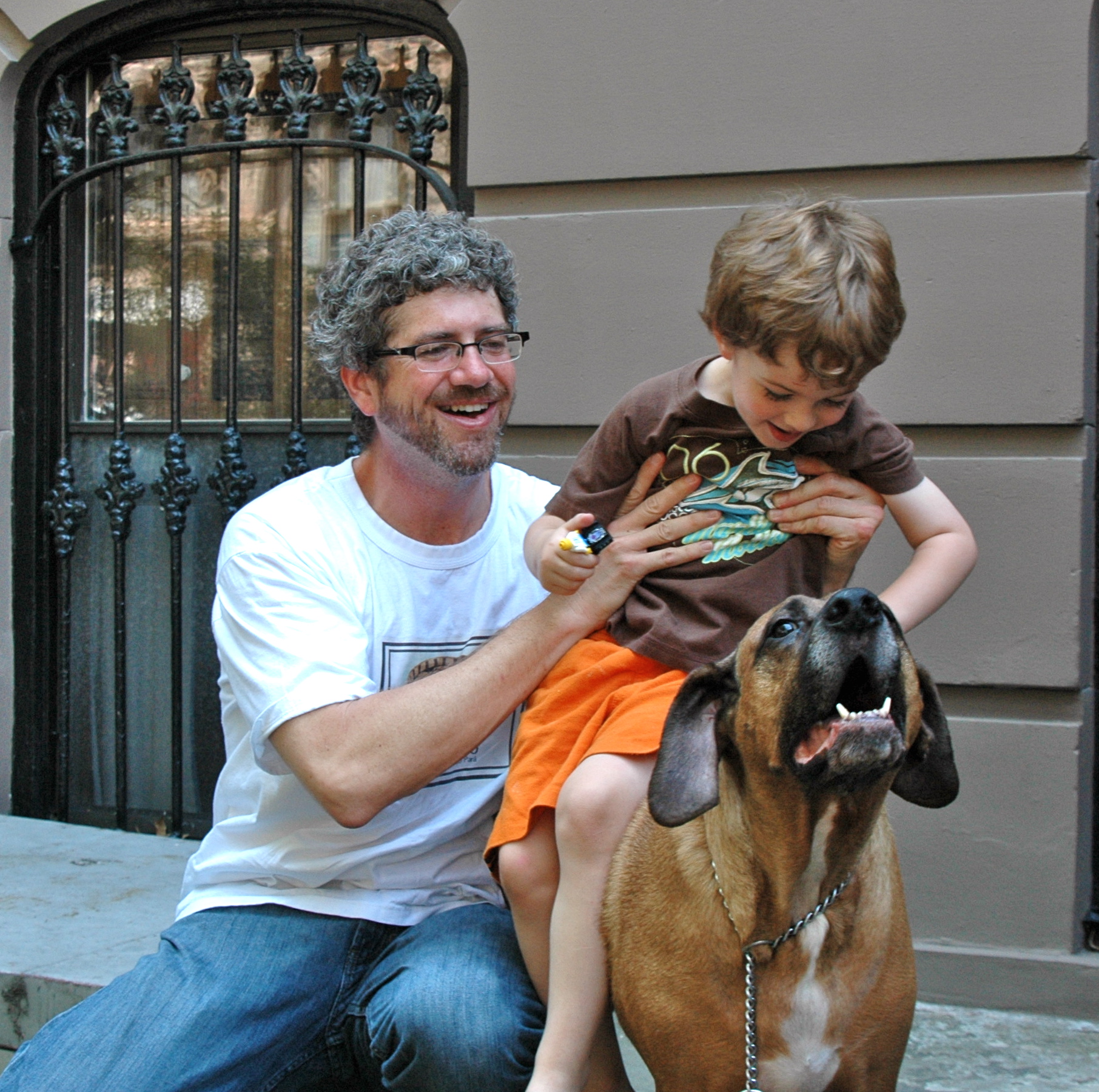 The photos are by the author.  The first is of me and Noel and Duke, taken in the summer of 2006 in front of our home at 50 Sterling Place.  Duke departed us in April 2009.