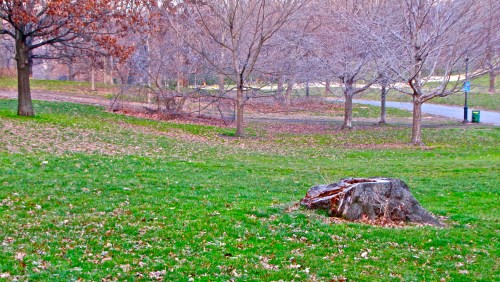 A few weeks ago, in December of 2011, my son and I were walking through the park when we passed the spot where the bee tree was. In its place, there was only a stump. It must have been cut down recently, perhaps a result of Hurricane Irene, or maybe disease. Between the Hurricane, last year’s tornado, and the unexpected Halloween snow storm in 2011, the park had a lot of downed trees to deal with – so much so that the park was giving away the mulch they made from this year’s Christmas trees. Whatever the reason, the bee tree was no more.
