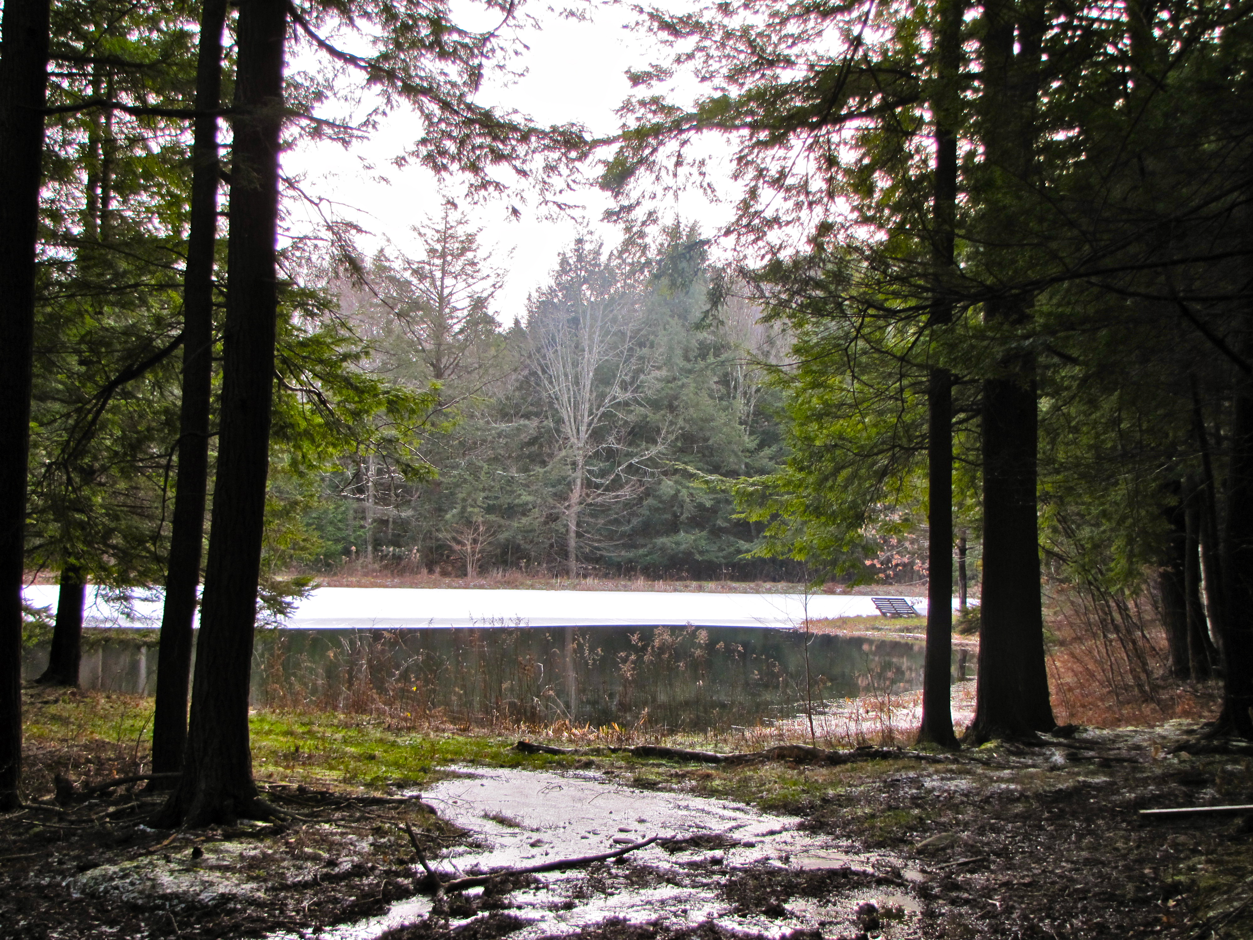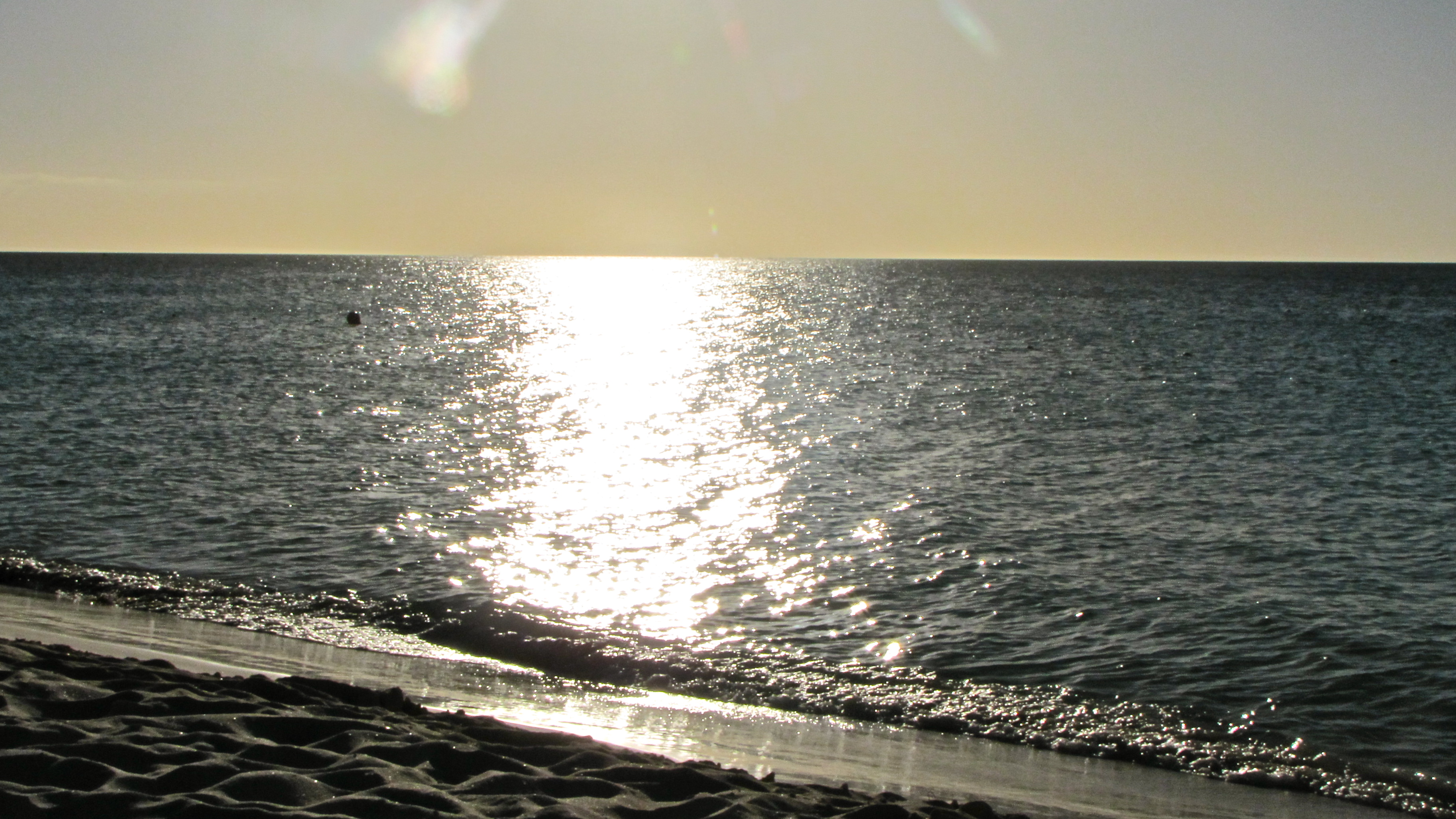 Photographs taken by the author.  Sunset:  February 13, 2012, at Eagle Beach, Aruba.  Frozen pond:  December 17, 2011 in the Catskill Mountains near Walton, New York.