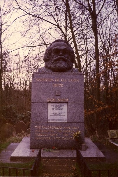 Photo Karl Marx’s grave, Highgate Cemetary, London, taken by the author in January, 1994, while on layover on the way to South Africa and its historical elections later that year.
